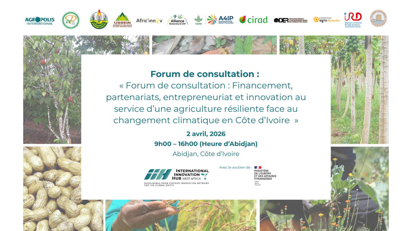 Le 02 avril 2026, le Forum de consultation d’Abidjan réunira les acteurs clés de l’écosystème des systèmes alimentaires ivoirien pour renforcer les synergies entre recherche, innovation et entrepreneuriat.